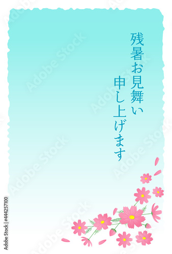 summer, flower, cosmos, summer getaway, grass, leaf, character, postcard, illustration, background, vector, japan, material, nature, copy space, sum, greeting, pattern, midsummer, greeting, plant, leaf, sweet