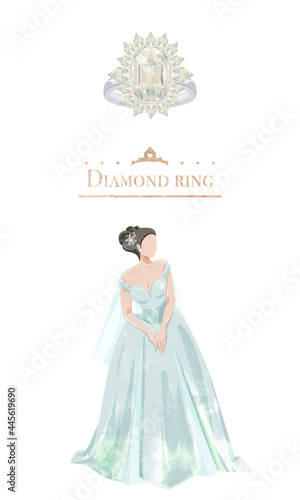プリンセスとダイヤモンドの指輪の水彩手書きイラスト