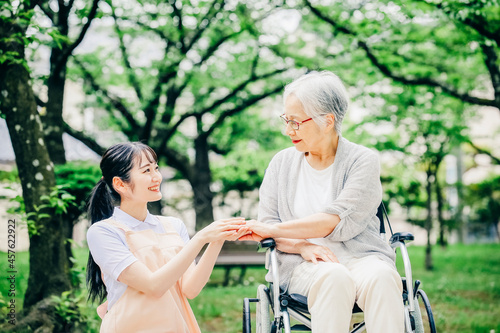 nurse, aged, nurse, care worker, wheelchair, care, walk, aged, helper, woman, rehab, nursing home, nanny, care, physical therapist, patient, welfare, hand, assistance, nurse, staff, rehabilitation, second life, hospital, wheelchair, aged, verdure, nursing home, speaking, communication, apron, medical care, smile, park, young, people, two people, open air, asian, japanese