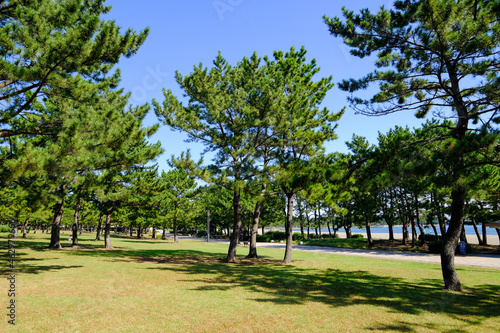 park, sea, yokohama, kanagawa, nature, blue, green, grass, sky, sunny, stroll, picnic, leisure, landscape, blue skies, tourist attraction, tour tourism, japan, beach, cloud, travel, island, open air, copy space, view, blank space, background, advertisement, background, bg, image, material, journey, showplace