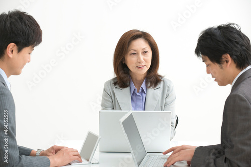 japanese, december, 50's, office, group, businessman, profile, indoor, 30s, work, business, woman, boss, waist up, people, man, meeting, adult, man, work, secondary