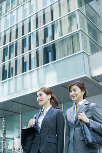 japanese, may, business building, building, open air, business, youth, woman, smile, waist up, people, man, adult, fellow, colleague, two people, walk, clinical