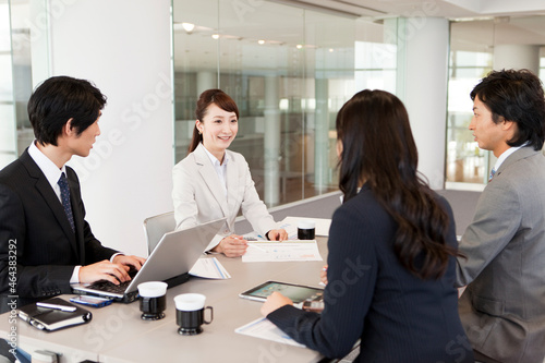japanese, office, group, team, notebook, personal computer, businessman, file, indoor, boardroom, conversation, table, seated, 30s, information, business, document, woman, smile, boss, waist up, people, man, version, meeting, adult, man, colleague, suit, secondary, ipad, outsource