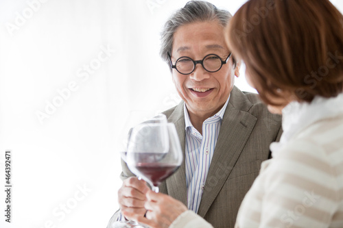 japanese, 50's, 60's, couple, glasses, party, lifestyle, wine, wine glass, drink, food and drink, indoor, family, conversation, toast, glasses, look, event, possess, liqueur, celebrate, woman, smile, waist up, people, man, red wine, adult, man, chum, two people, couple, friends, speaking, aged