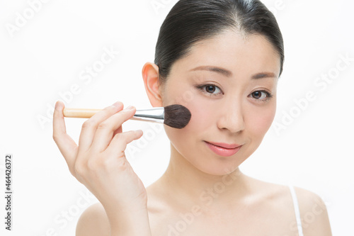 japanese, up, studio, teak, brush, young adult, lifestyle, indoor, make-up, face, 30s, possess, woman, waist up, people, man, clean, adult, paint, japan, skin, lovely, cosmetic, cheek, image