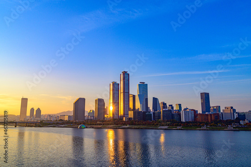 일출 시간에 촬영한 서울 여의도 도시 풍경