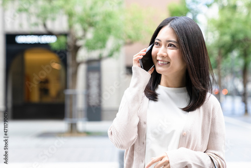 open air, people, japanese, asian, woman, young, lifestyle, town, city, walk, long hair, portrait, shopping, shopping, trip, fun, light, waist up, smartphone, cyberspace, mobile phone, call, speaking, call
