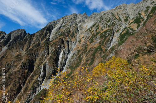 紅葉の北アルプスの絶景トレイル。日本の雄大な自然。