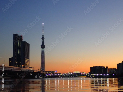 sunset, city landscape, tokyo, city, landmark, bridge, night, sky, tower, power, building, architecture, stream, dusk, light, japan