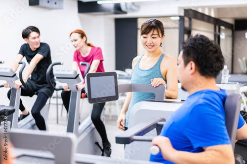 gym, trainer, middle-aged, diet, brazen, exercise, sport, training, cheer, support, motivation, fat, muscle, prevention, health, aim, hustle, blood pressure, diabetes, strong, force, power, trainer, sitting, loading, protein, man, woman, business, asian, japanese, chinese, korean, copy space