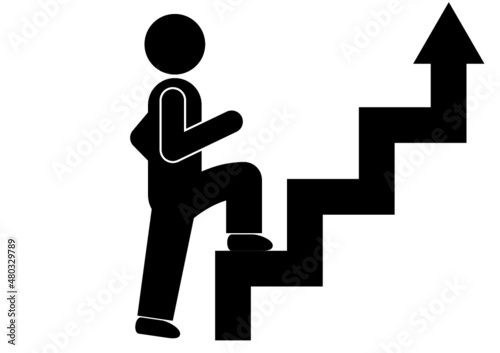 pictogram, silhouette, arrow, grow, staircase, climb, mark, monochrome, black, people, black-and-white, signs, icon, man, stick figure, seal, signs, vector, illustration, learning