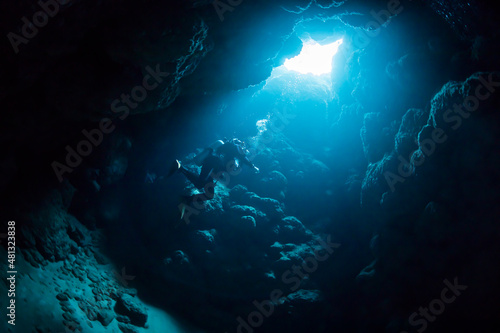 ダイバー 光 洞窟