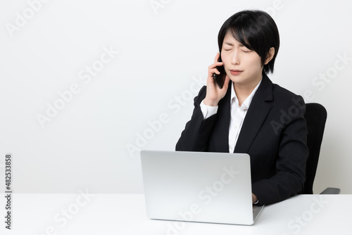 woman, woman, japanese, asian, business, work, model, young, sweet, beauty, 30s, white background, career woman, short hair, suit
