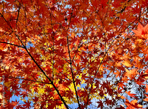 赤く染まる紅葉、美しい、紅葉のシーズン、色彩
