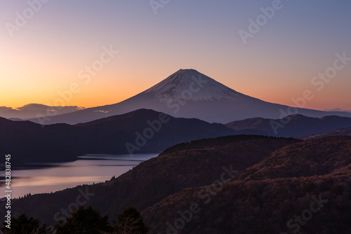 箱根大観山から見た夕暮れの富士山・冬