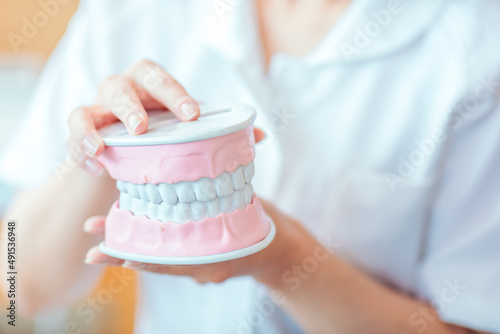 歯科衛生士と歯型模型