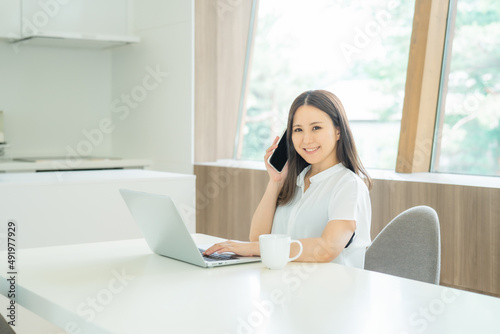 telecommuting, smartphone, call, personal computer, woman, notebook, sideline, smartphone, homemaker, career woman, call, work, personal computer, house, study, search, business, smile, cyberspace, programmer, mail, engineer, speaking, coffee, lighter, villa, online, office, contact, home, dining, casual, young, kitchen, room, japanese, people