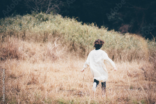 草原を走る人