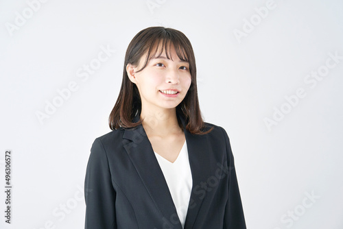 woman, portrait, japanese, young, smile, white background, business, suit, ol, work, asian, waist up, alone, work, employee, temp