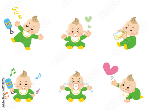 baby, baby, boy, children, children, children, happy, happiness, birth, family, family, baby, toddler, child rearing, pretty, sweet, illustration, people, smile, good night, sleep, baby bottle, milk, toy, cry, cadence, set, variation, vector, cartoon