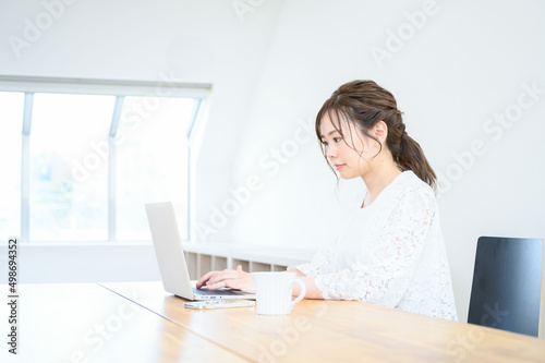 woman, personal computer, designer, mother, remote, homemaker, solemn, earnest, engineer, personal computer, beauty, contemplate, work, work, copy space, white, light, room, sweet, clean, young, 30s, japanese, people, notebook, lifestyle, examine, seated, waist up, search, mail, business, study, telecommuting, table, portrait, asian, input, horizontal