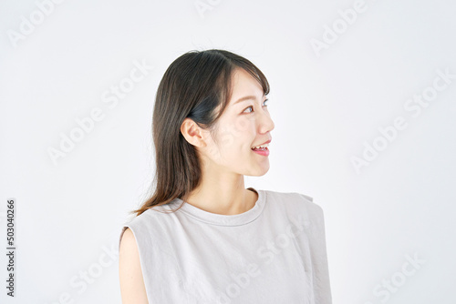 woman, smile, portrait, young, white background, japanese, smile, asian, waist up, alone, summer, 30s
