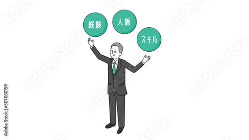 スーツのシニア男性、再就職のアピールポイントのイメージイラスト、ベクター