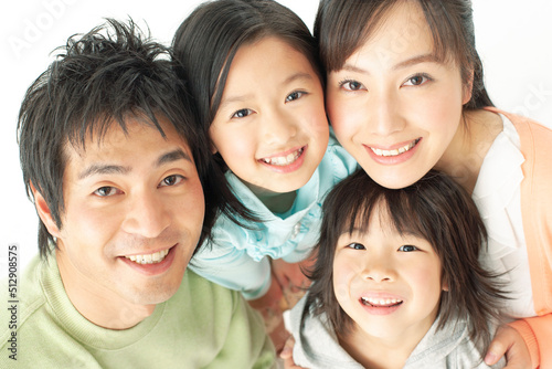 japanese, adult, family, father, mother, children, boy, girl, portrait, chum, 30s, young, family, children, brother, sister, brother, couple, mother, father, smile, waist up, face, up, sweet, happy, love, lively, cuddle, people, lifestyle, asian, indoor, indoor, white background