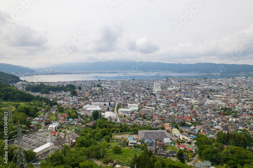 landscape, view, summer, overcast, open air, lake, mountain, japan, tourist attraction, view, town, city, vision, nature, building, sunny, mountain, asia, showplace, water surface, travel, journey, aerial, orient