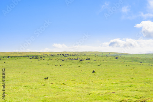 asia, japan, summer, sunny, june, morning, sky, cloud, mountain, meadow, plateau, blue skies, blue, green, white, tour tourism, view, landscape, tourist attraction, scene, trek, hike, climb, walking, walk, nature, nature, travel, copy space, journey, ranch, lovely, clean, panorama, immensity