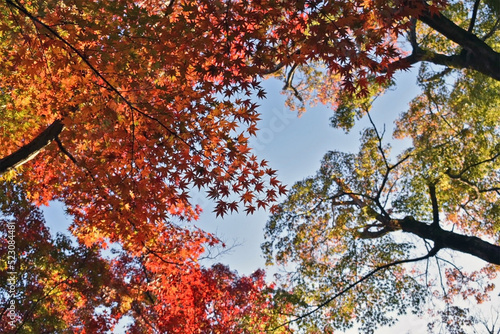 maple, plant, landscape, nature, sky, blue skies, fall, wood, leaf, acer, branch, colourful, copy space, japan, kyoto