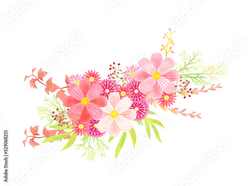 cosmos, flower, fall, chrysanthemum, aster, red, pink, flower, floral arrangement, watercolor, illustration, vector, material, decoration, floral, sweet, natural, bouquet, pretty, ornament, design
