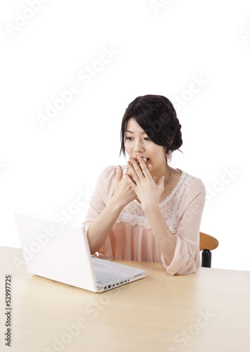 woman, homemaker, mail, personal computer, notebook, cyberspace, asian, casual, table, model, lifestyle, relax, alone, elegant, chinese, people, indoor, happy, seated, daytime, japanese, life, enjoy, refreshing, live, white, smile, clean, lovely, beauty, young, black hair