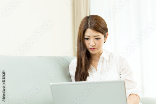woman, japanese, personal computer, lifestyle, room, smile, young, people, cyberspace, search, refreshing, relax, indoor, chinese, korean, notebook, living room, loosen up, natural, personal computer, taiwanese, beauty