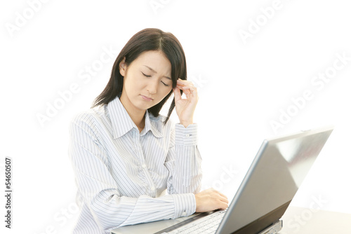 personal computer, notebook, cephalalgia, people, lovely, fatigue, overwork, woman, woman, beauty, japanese, health, cosmetic, business, face, hair, nose, ol, model, sweet, pretty, young, girl, office, career woman, clean, beauty, white background, copy space, overtime, flop, inability, apprehension, blues, expression, clean, dispatch, black hair, pose, work, corporation, corporate, staff, office worker