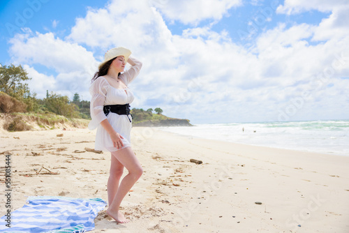 woman, people, sea, australia, australian, summer, young, beach, travel, beach, blue skies, clean, nature, open air, resort, copy space, sky, smile, hat, journey, tour tourism, landscape, vacation, view, tan, summer getaway, woman, lifestyle, light, relax, pretty, beach, portrait, fun, girl, vacation, leisure, leghorn, dress, dazzling, white