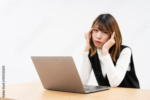 woman, notebook, fatigue, cephalalgia, work, backache, computer, business, weary, businesswoman, person, office, noto, technology, cyberspace, happiness, winner, beauty, hand, japanese, operator, working, success, people, sitting, smile, exciting, successful, smiling, won, student, enjoyment, merry