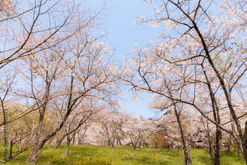 cherry blossom, spring, northeast, landscape, flower, blue skies, plant, nature, japan, full bloom, sakura, pink, sunny, world heritage, field, forest, grass, green, sky, wood, park
