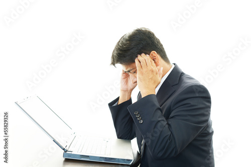 personal computer, cephalalgia, man, man, businessman, business, salaried employee, japanese, fatigue, overwork, stress, flop, pain, painful, shoulder, marode, patient, anguish, damp, apprehension, overtime, depression, health, cosmetic, model, people, good-looking, office, clean, white background, copy space, pose, work, uniform, adult, expression, japan, corporate, employee, adult, work, person, training