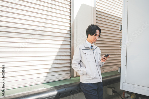 business, businessman, employee, work, work, office, corporation, japanese, asian, portrait, people, waist up, young, 30s, black hair, man, refreshing, smartphone, smartphone, operation, mobile phone, truck, vehicle, transport, driver, driver, drive, transport, carry, transport, delivery, courier service, relocation, logistic, circulation, working man, trader, suit, cravat