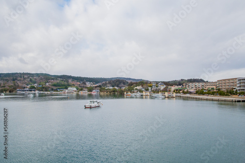 japan, sendai, matsushima, sea, water, wave, port, town, seaport, view, landscape, background, wallpaper, copy space, background, sunny, daytime, sky, cloud, blue skies, material, image, boat, lull, mountain, nature, nature