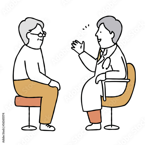 診察を受ける中年男性と医者のイラスト素材 イエロー
