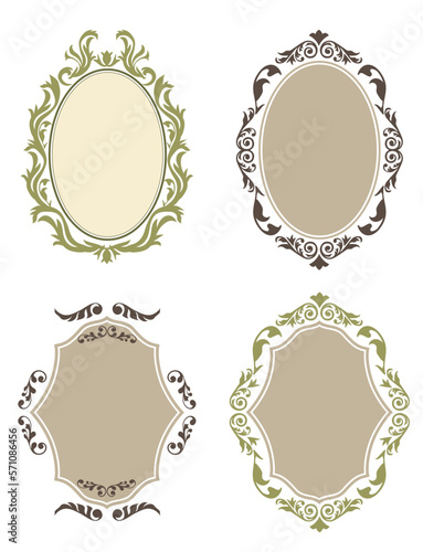 エンブレム風のオリエント柄、アラベスク柄、ダマスク柄の飾り罫ビンテージのフレームのイラストセット