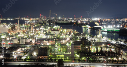 nightscape, factory, industry, industrial complex, night, moon, smoke, chimney, plante, equipment, facility, illumination, city landscape, japan, lovely, beauty, clean, stream, landscape, scene, view, building, image, showplace, virility, steam, technology, energy, piping, industry, refinery, construction, glitter