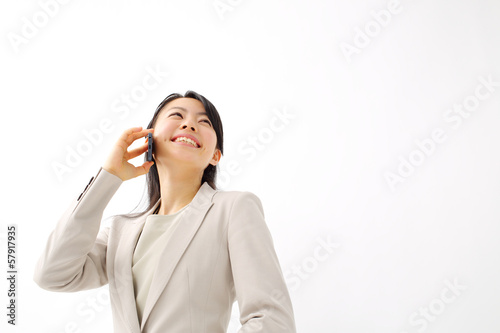 woman, smartphone, business, businessman, girl, smartphone, white, white background, cut-out, indoor, corporation, employee, office, japanese, young, alone, waist up, speaking, conversation, call, contact, advisory, asian, smile, smile, sweet, pretty, pretty, clean, beauty, joyful, fun, rejoice, black hair, work