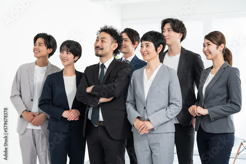 office, team, businessman, business, carrier, employee, engineer, staff, colleague, fellow, people, japanese, young, man, woman, casual, smile, smile, corporation, corporate, office, office, indoor, 30s, multitude, massa, venture, work, designer, copy space, stand, boss, secondary