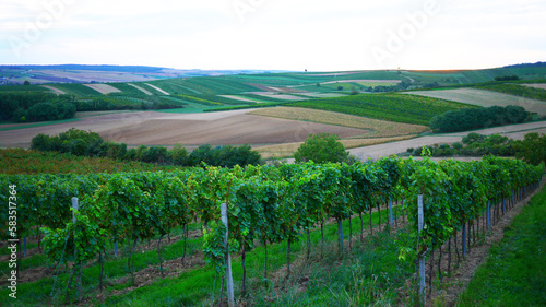 field, calm, sunset, evening, grape, rural, vinery, sky, farm, wine