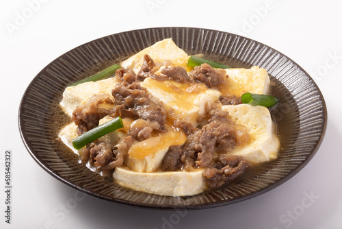 food, side dish, meat, beef, tofu, green onion, dish, meal, knob, pub, image, material, white background, ragout
