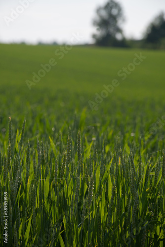 初夏の緑のムギ畑