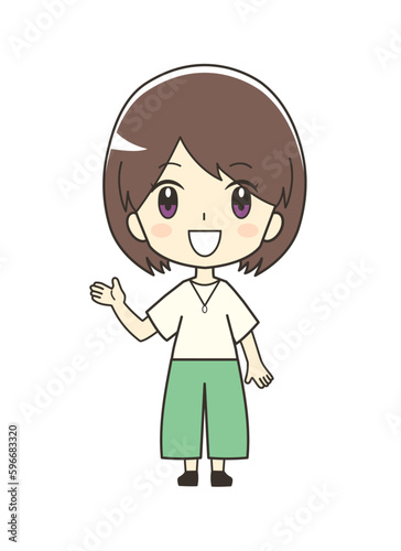 illustration, vector, people, person, woman, woman, sweet, pretty, expression, pose, cartoon, manga, smile, refer
